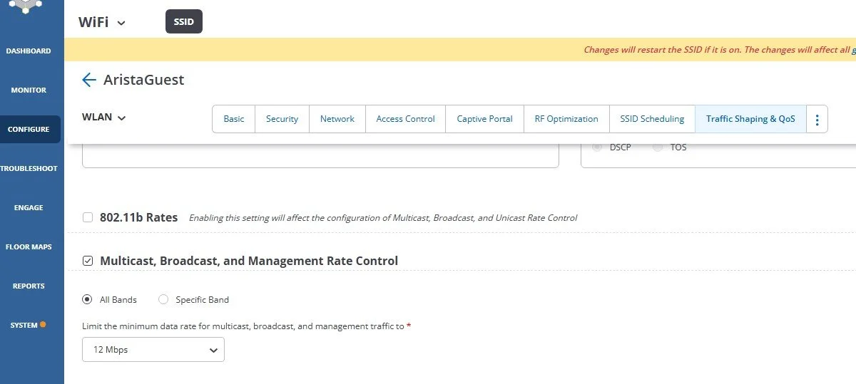 However, doing so can negatively impact the rest of your wireless network. Clients that join with older modulation rates will slow down any other wireless clients on the same channel potentially impacting your production wireless networks even though they are on a different SSID.
